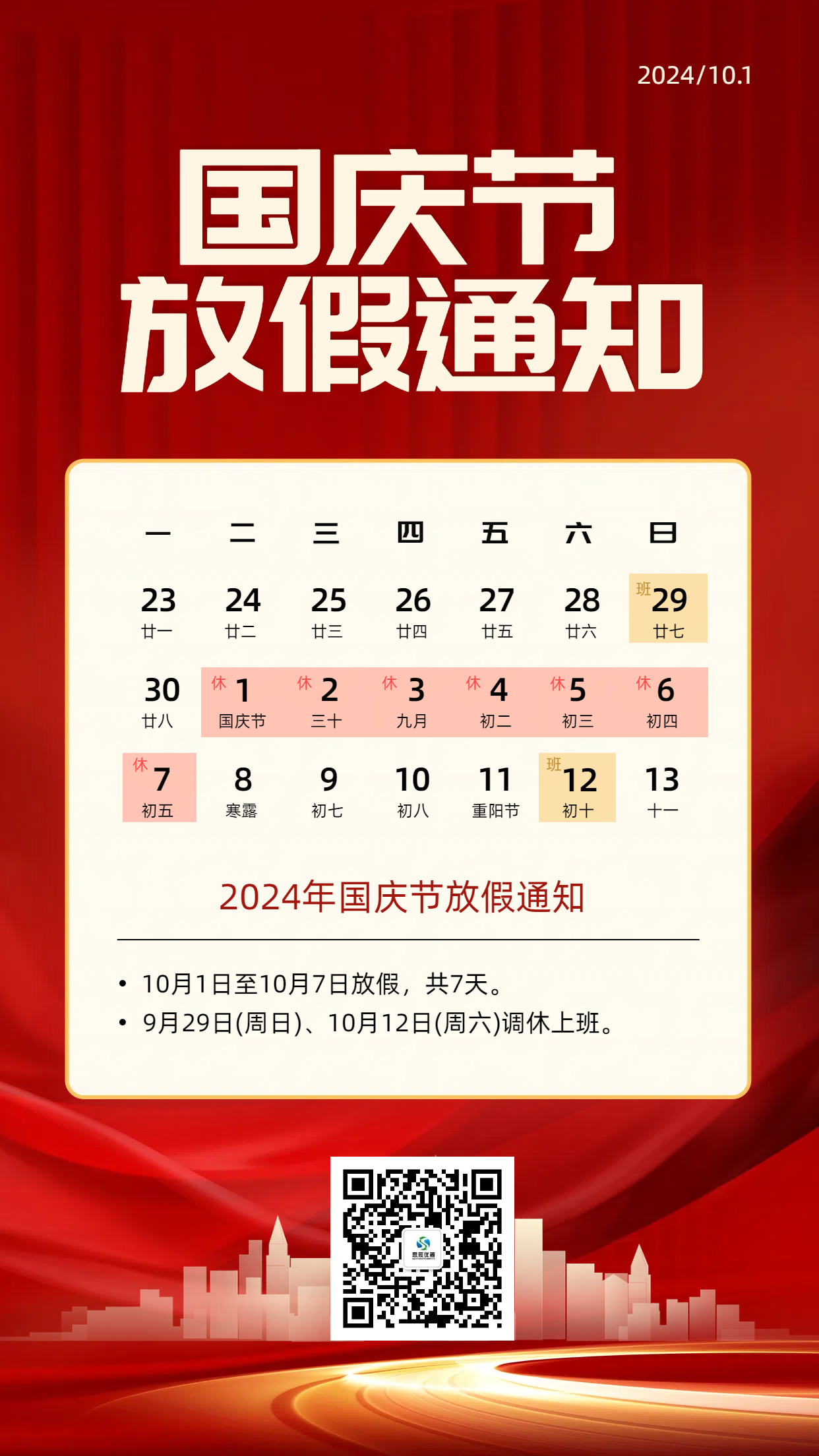 二零二四年思辰儀器國(guó)慶佳節(jié)放假通知