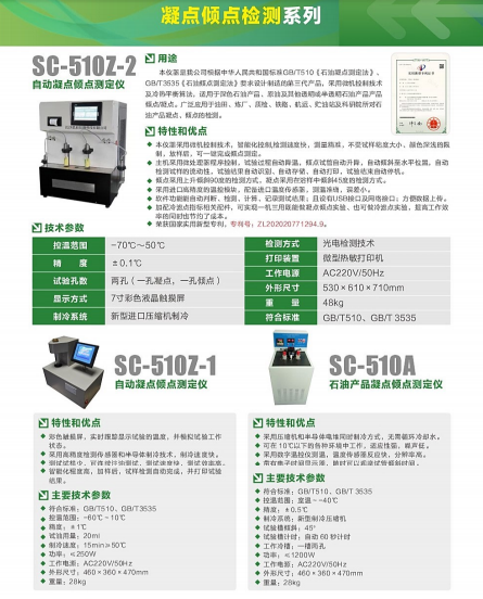 怎么選擇一臺合適的凝點傾點設(shè)備也是關(guān)鍵,思辰儀器有好幾款型號的機型供你選擇,SC-510A/SC-510B/SC-510Z-1/SC-510Z-2;從手動到自動,總有一款適合您的