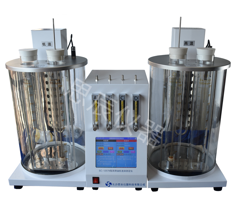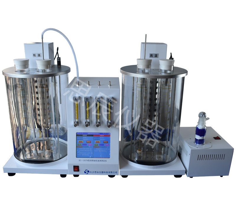 本儀器是根據(jù)標(biāo)準(zhǔn)GB/T12579《潤滑油泡沫特性測定法》及標(biāo)準(zhǔn)ASTM D892研發(fā)設(shè)計制造,采用數(shù)字式 PID 溫控器控制浴槽溫度,通過電機攪拌使浴槽恒溫均勻(高溫槽 93.5℃,或低溫槽 24℃,控溫精度±0.1℃)。使用空氣泵、轉(zhuǎn)子流量計、氣體擴散頭、計時器等,向裝有試樣的量筒內(nèi)、定時定量地通入空氣,測定試樣產(chǎn)生氣泡的體積。儀器外形美觀、使用方便。